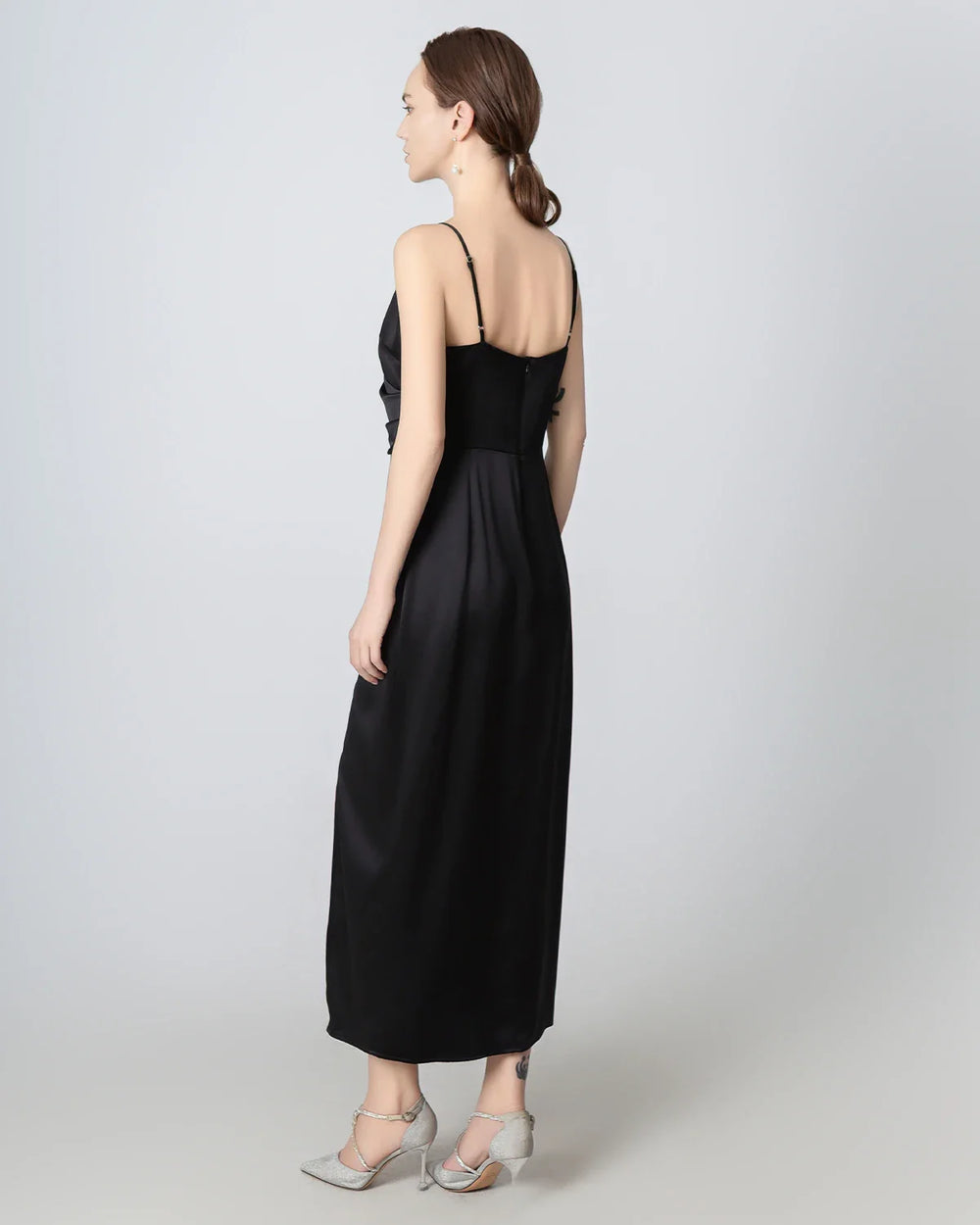 Introducing our elegant High Slit Cowl V-neck Maxi Silk Dress, the epitome of sophistication and grace. This exquisite dress seamlessly combines luxurious silk fabric with a modern design, perfect for any bridesmaid ensemble. The flattering cowl neckline adds a touch of allure, while the high slit skirt creates a stunning silhouette that exudes confidence and style. Whether you're attending a wedding or any special occasion, this dress is sure to make a statement. Elevate your bridesmaid look with our Maxi Silk Dress and experience unparalleled elegance and charm.